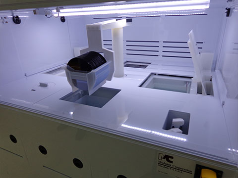 One (1) single drying chamber allows for DI water rinsing and IPA Vapor Drying in one free standing unit. IPA vapor is generated inside your standard one gallon bottle so bottle change is very easy and quick. IPA bottle change is at deck level in our exhausted compartment with level sensor protection.